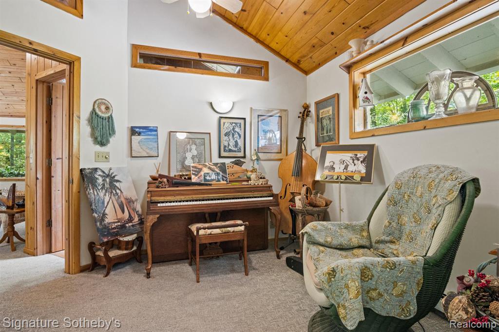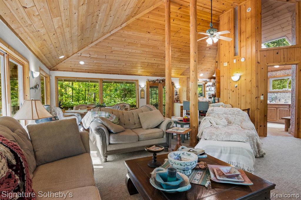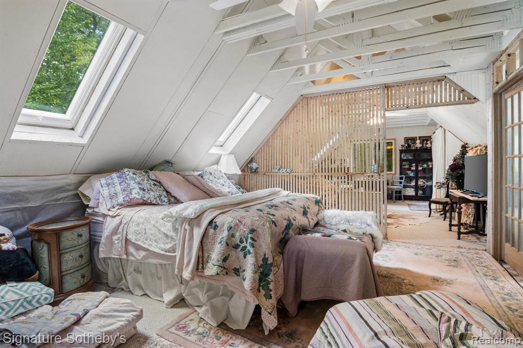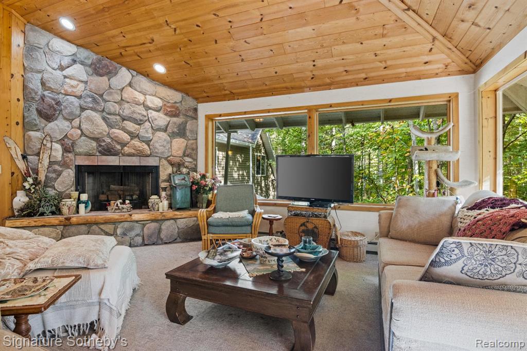 It's not too late...this 'Treehouse' in Michigan assures your enjoyment through all four seasons! This enchanting woodland property in northern Michigan evokes the charm of the English and French countrysides, infused with elements reminiscent of the Frank Lloyd Wright era. Nestled on the north shore of Bear Lake in Bear Lake Township, near Kalkaska, the residence is part of the Sylvan Glads Homeowners Association, which offers deeded access to the all-sports Bear Lake and its beach. Designed by the original owner, this "treehouse" features three suites connected by an interior atrium staircase, ensuring year-round comfort, along with a spacious multi-car garage equipped with ample storage and workbench areas. The location is ideal for those seeking tranquility while enjoying a variety of seasonal activities, including swimming, fishing, sailing, golfing, motocross, hiking, downhill skiing, snowmobiling, biking, and horseback riding on state trails. Nearby Traverse City offers cultural experiences such as the Annual Cherry Festival and various equestrian events, while towns like Grayling and Kalkaska host their own festivals and outdoor activities, ensuring a vibrant community atmosphere. |
