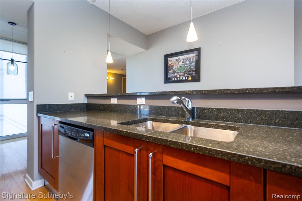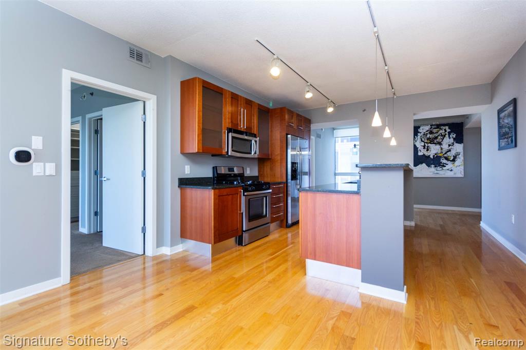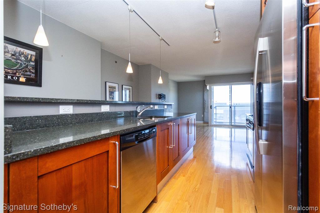 Enjoy high-rise living in the heart of downtown Royal Oak. This beautifully updated 2-bedroom, 2-bath condo offers an open, sun-filled layout with hardwood floors, custom lighting, gas fireplace, and a private west-facing balcony with skyline views. The kitchen features Aran European cabinets, granite counters, and SS appliances. Spacious primary suite with walk-in shower and exceptional closet space. A second bedroom and full second bath with tub provide flexibility for guests or a home office, while the in-unit washer and dryer add convenience. Concierge/doorman, 24-hour gym, heated garage parking, storage unit, and bike space included. HOA covers gas, heat, water, and trash. Immediate occupancy. |